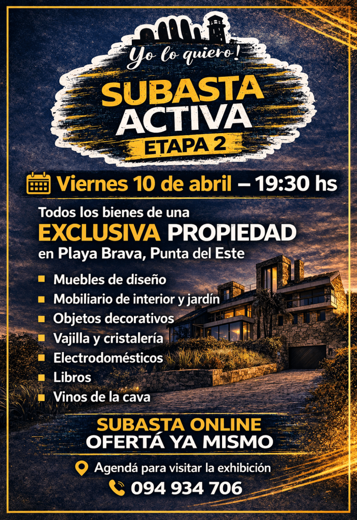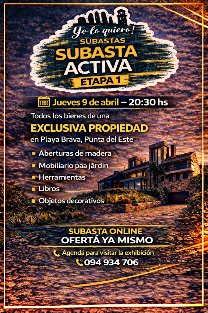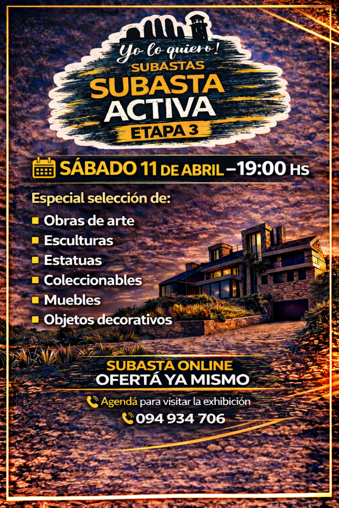 Home ¿Quiénes somos?Servicios¿Cómo vender?Formas de pago MENU Próxima subasta Subastas pasadas Mercado Pago En venta directa 1775777400 días horas minutos segundoshastaPRÓXIMO REMATE TRIPLE JORNADA DE SUBASTAS VER FOTOS ACCESO DIRECTO A LA SUBASTA DEL JUEVES 9 DE ABRIL 20:30 HS ACCESO DIRECTO A LA SUBASTA DEL VIERNES 10 DE ABRIL 19:30 HS ACCESO DIRECTO A LA SUBASTA DEL SABADO 11 DE ABRIL 19:00 HS Instagram WhatsApp Facebook